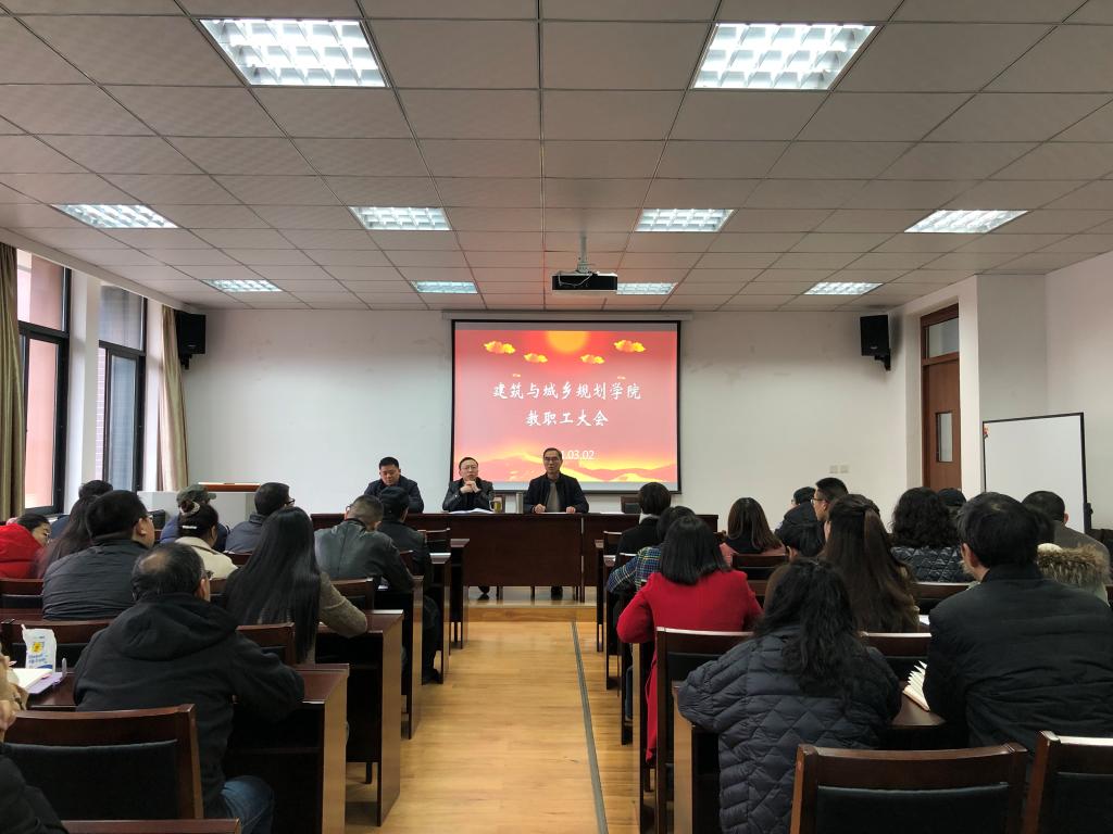 召开新学期全体教职员工大会,院领导班子和全体教职工参加会议,会议由党委书记申琼主持。