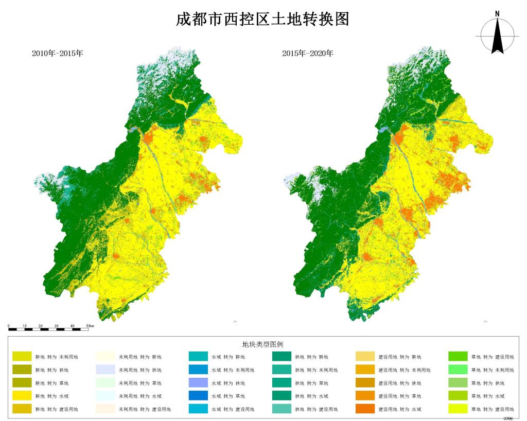 《我眼中的“成都市西控区域”》借助Map GIS软件平台,取成都市西控区域2010、2015、2020年三个时间节点的影像数据,主要采用马尔可夫分析、景观格局指数和归一化的方法,分析土地利用格局时间和空间的变化、景观格局、生态变化等,探究西控区域的地势与生态条件及其发展机遇。