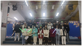 “荧光夜跑”活动结束后,闭幕式也在银杏四楼顺利举行,参与者手拿荧光棒,聚成一片荧光的海洋,闭幕式上文娱部同学们的节目也引来了阵阵欢呼,将闭幕式推向了高潮。
