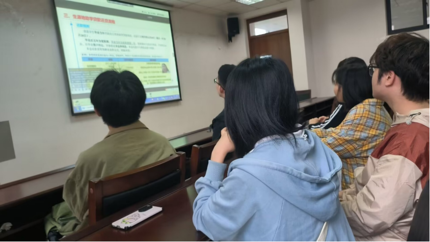 会议开始,由杨丽娟老师先为办理过助学贷款的毕业生同学解读生源地助学贷款信贷政策,讲解了生源地助学贷款本金延期的具体流程以及生源地助学贷款的还贷流程,最后向毕业生同学提供了答疑的咨询渠道。