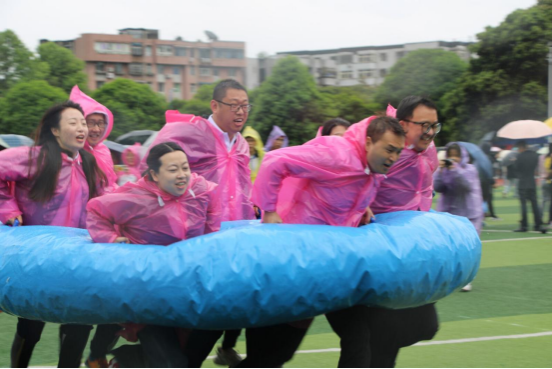 的教职工联合组建成五支队伍,踊跃投身于富有趣味的集体项目之中。